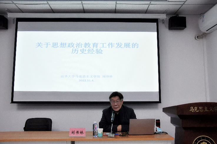 为涵养马院优良学风,培养学生学术兴趣,2022年11月5日晚,九游体育官方网站九游体育官方网站传习所系列论坛第七讲成功举办,清华大学九游体育官方网站二级教授刘书林应邀作题为《关于思想政治教育工作发展的历史经验》的学术报告。